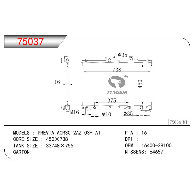 适用于TOYOTA PREVIA ACR30 2AZ OEM:16400-28100/16400-28431/16400-28120/16400-28410/1640028100/1640028431/1640028120/1640028410