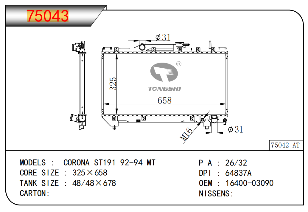 适用于宝马E30 320 i 82-93 AT散热器
