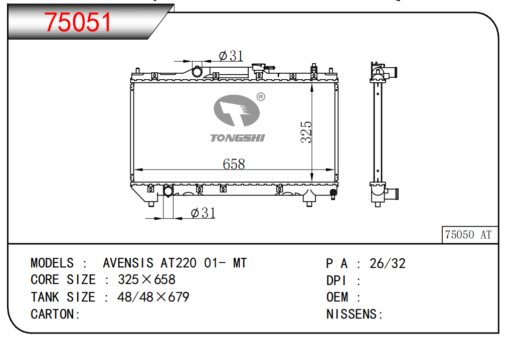 适用于沃尔沃V40 1.9TD D4192T 95- MT散热器