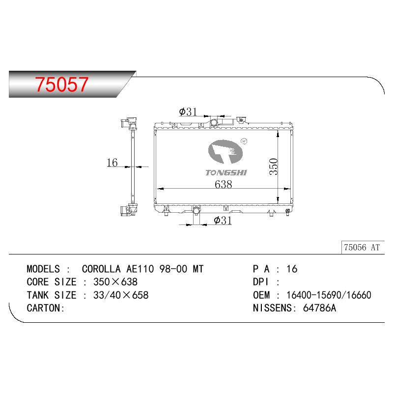 适用于丰田花冠 AE110 98-00 MT散热器 OEM:16400-15690/16400-16660/16400-15480/16400-16680/1640015450
