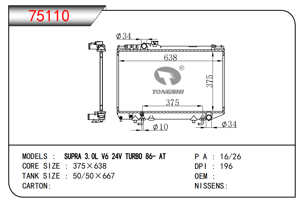 适用于宝马E30 320 i 82-93 AT散热器