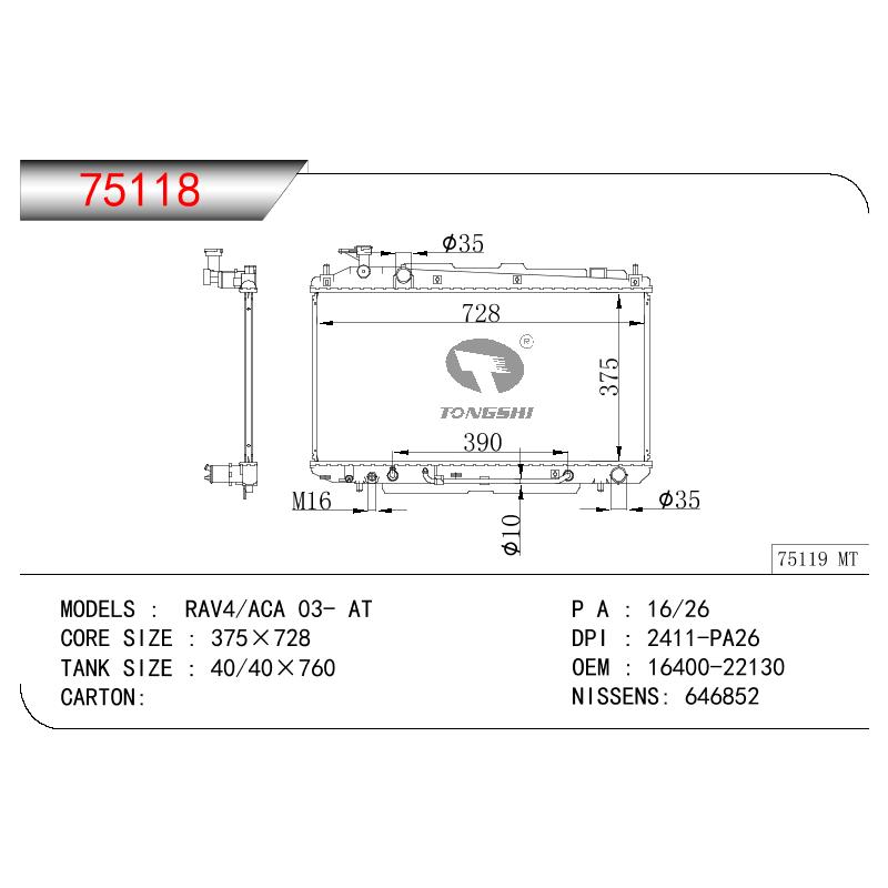适用于TOYOTA RAV4/ACA OEM:16400-22130/16400-22120/16400-22121/16400-28130/1640022130/1640022120/1640022121/1640028130