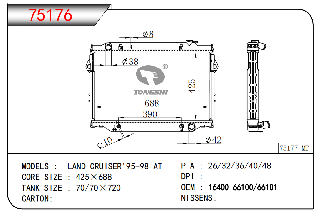 适用于沃尔沃V40 1.9TD D4192T 95- MT散热器