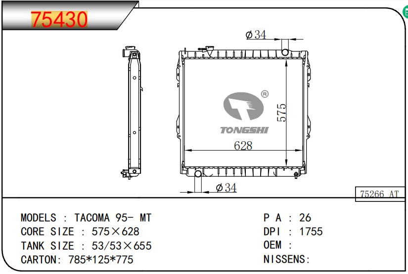 适用于沃尔沃V40 1.9TD D4192T 95- MT散热器