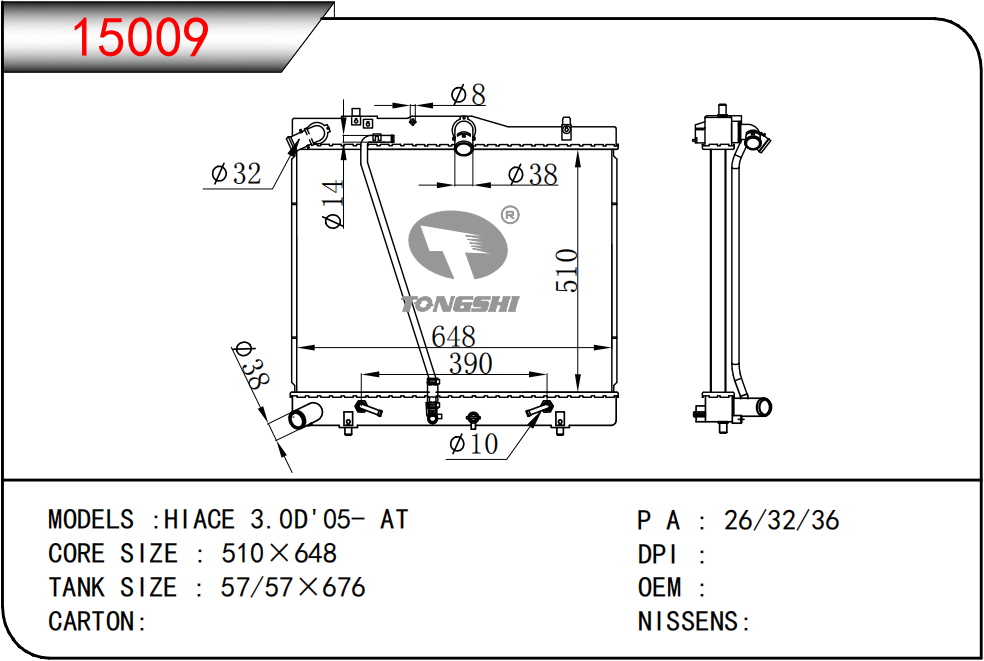 适用于FREIGHTLINER CASCADIA 125/ 113 L6 12.8L 12-13 AT散热器