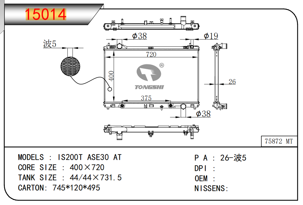 适用于沃尔沃V40 1.9TD D4192T 95- MT散热器