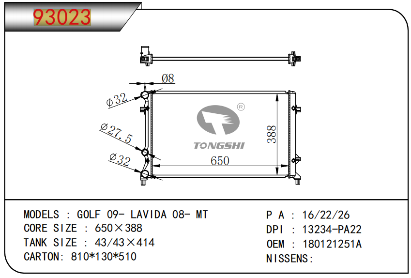 适用于沃尔沃V40 1.9TD D4192T 95- MT散热器