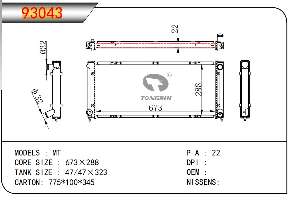 适用于沃尔沃V40 1.9TD D4192T 95- MT散热器