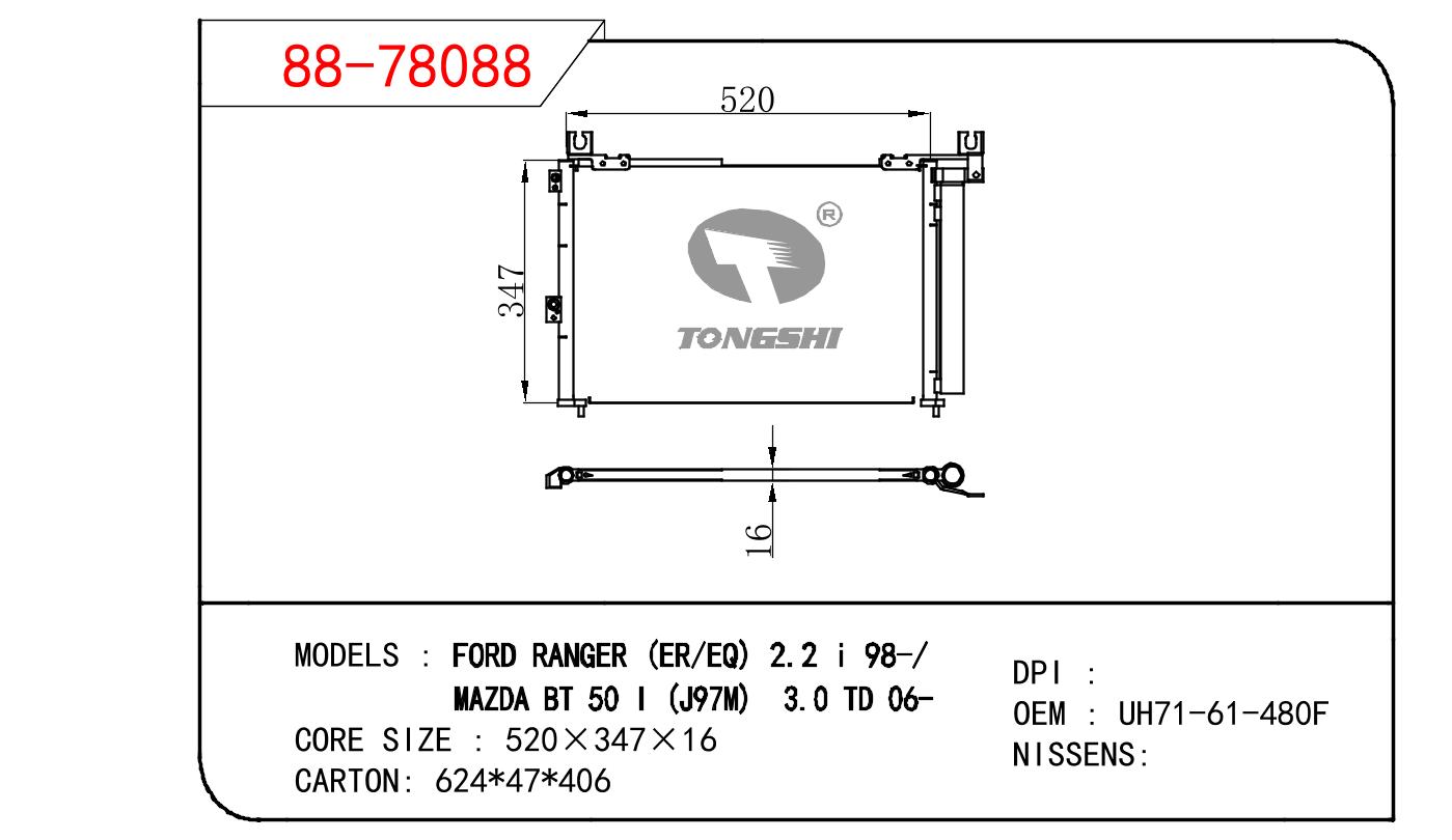 适用于福特RANGER (ER/EQ) 2.0 I 98-/马自达 BT 50 I (J97M) 3.0 TD 06- 冷凝器 OEM : UH71-61-480F