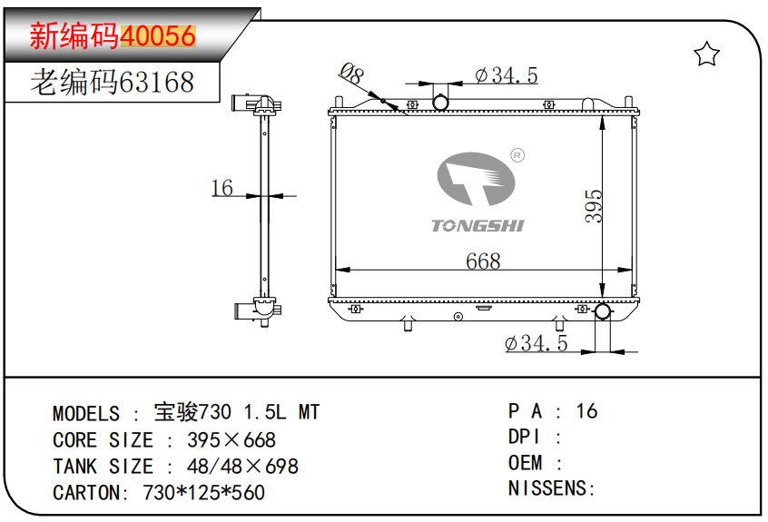 适用于沃尔沃V40 1.9TD D4192T 95- MT散热器