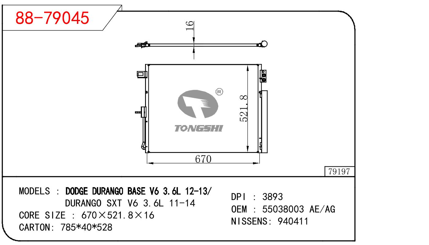 适用于GM DODGE DODGE DURANGO BASE V6 3.6L 12-13/DURANGO SXT V6 3.6L 11-14 冷凝器