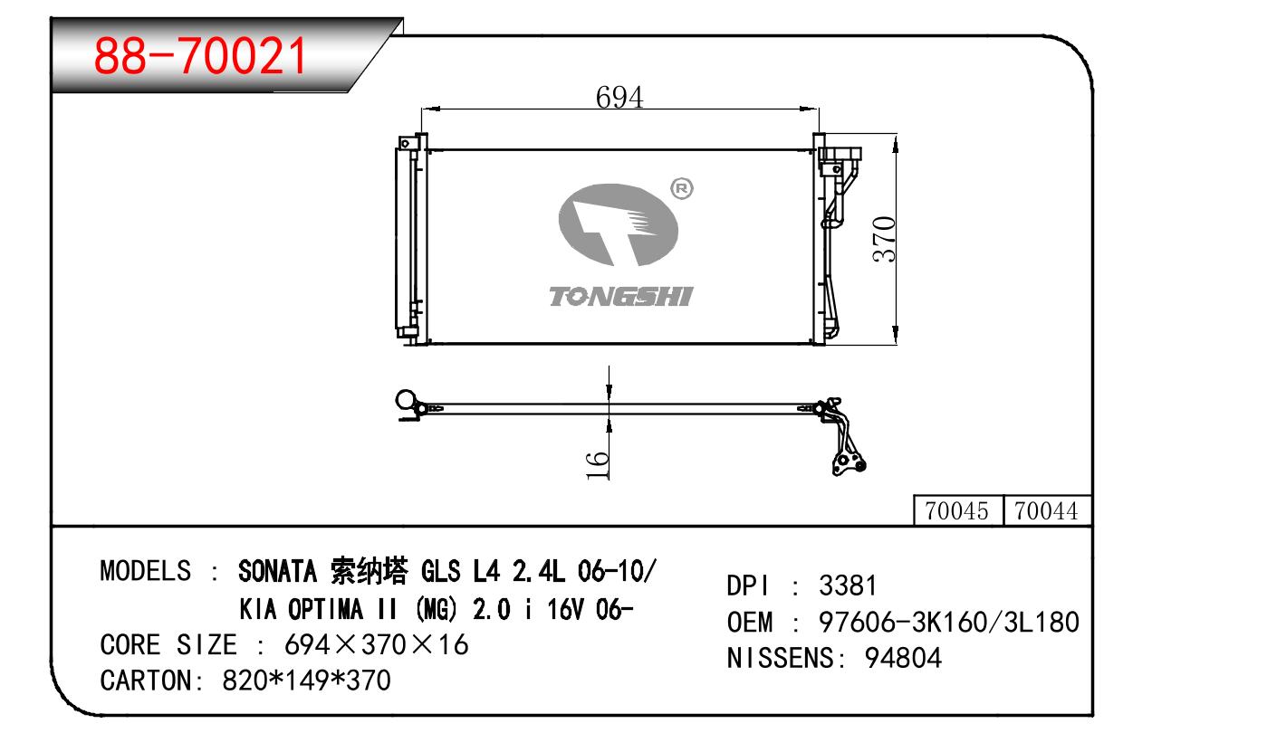 适用于现代 索纳塔 GLS L4 2.4L 06-10/起亚 OPTIMA II (MG) 2.0 I 16V 06- 冷凝器 OEM : 97606-3K160/3L180