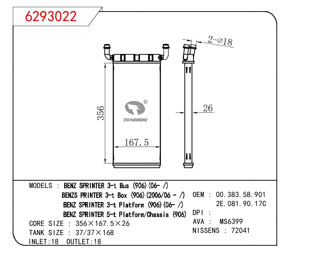 适用于奔驰凌特3-T (906) 06-/3-T BOX (906) (2006) 06-/3-T PLATFORM (906) 06-/5-t Platform/Chassis(906)暖风