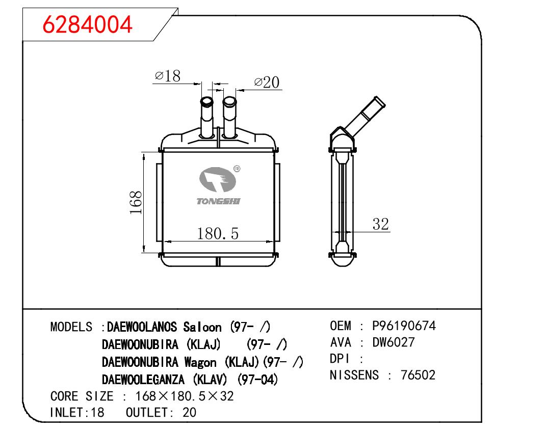 适用于大宇LANOS SALOON 97-/NUBIRA (KLAJ) 97-/NUBIRA WAGON (KLAJ) 97-/LEGNZA (KLAY) 97-04暖风