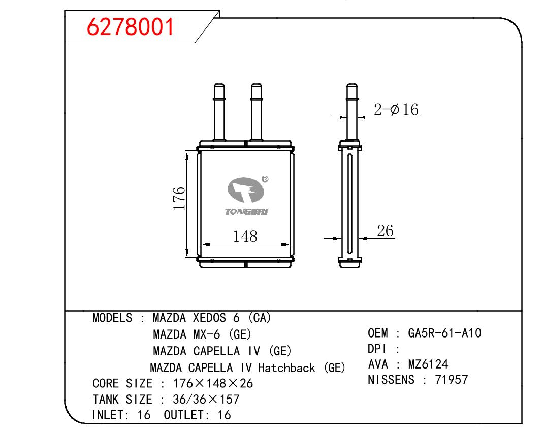 适用于FORD MAZDA XEDOS 6(CA)/MAZDA MX-6 (GE)/MAZDA CAPELLA IV (GE)/MAZDA CAPELLA IV HATCHBACK (GE) OEM:GA5R-61-A10/GA5R61A10