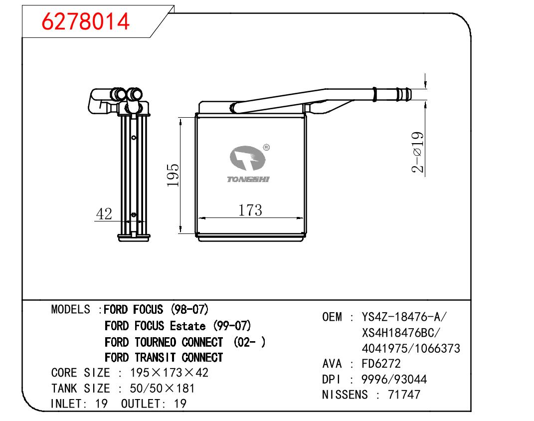 • 芯体尺寸:195*173*42