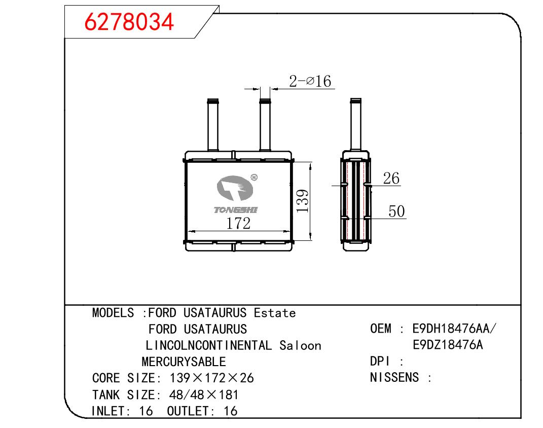 适用于FORD FORD USATAURUS ESTATE/FORD USATAURUS/LINCOLNCONTINENTAL SALOON/ MERCURYSABLE OEM:FICZ18476A/E9DZ18476A