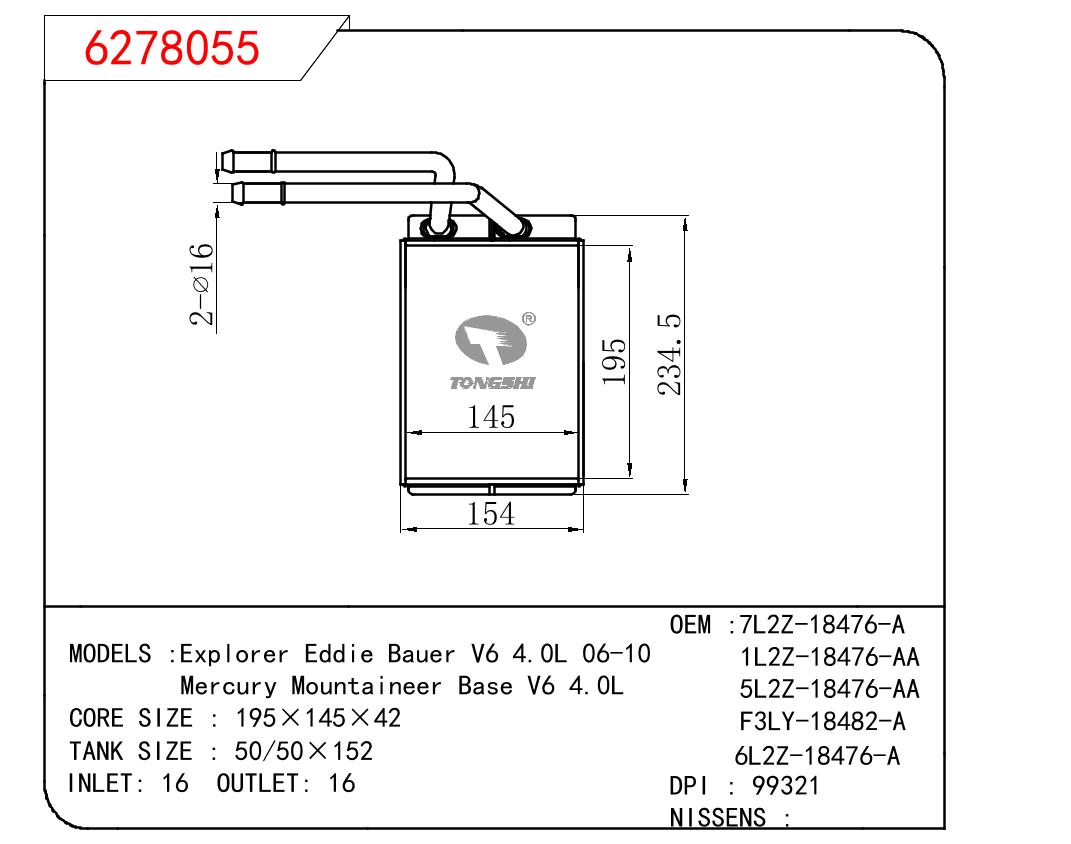 适用于FORD Explorer Eddie Bauer V6 4.0L 06-10/Mercury Mountaineer Base V6 4.0L OEM:7L2Z18476A/1L2Z-18476-AA/5L2Z-18476-AA/F3LY-18482-A/6L2Z-18476-A
