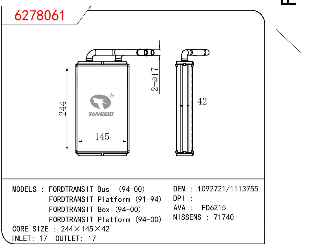 适用于沃尔沃V40 1.9TD D4192T 95- MT散热器