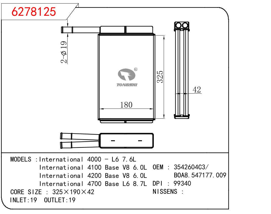 适用于FORD International 4000 - L6 7.6L/International 4100 Base V8 6.0L/International 4200 Base V8 6.0L/International 4700 Base L6 8.7L OEM:3542604C3/BOA8547177009