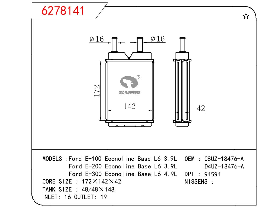 适用于FORD Ford E-100 Econoline Base L6 3.9L/Ford E-200 Econoline Base L6 3.9L/Ford E-300 Econoline Base L6 4.9L OEM:C8UZ-18476-A/D4UZ-18476-A