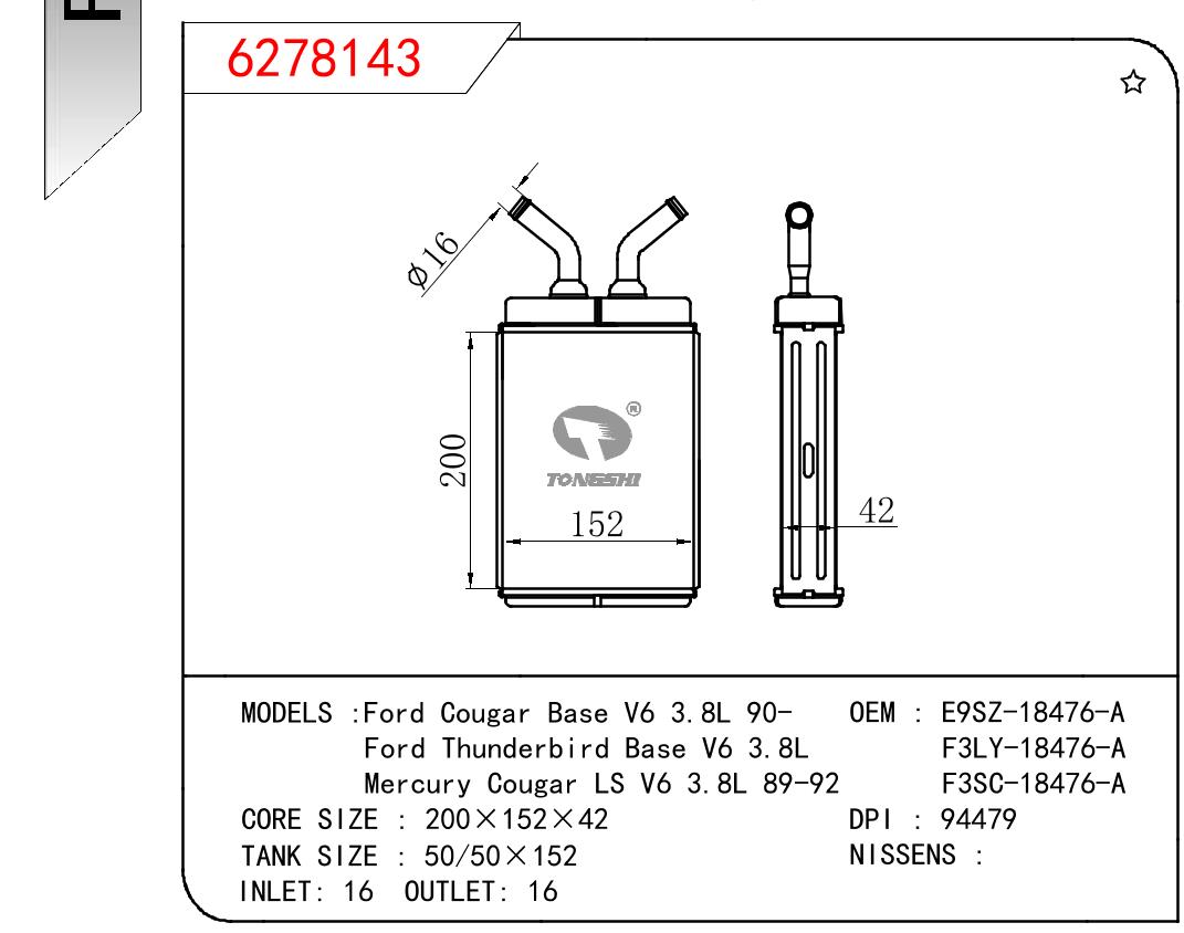 • Ford Cougar Base V6 3.8L 90-/Ford Thunderbird Base V6 3.8L/Mercury Cougar LS V6 3.8L 89-92