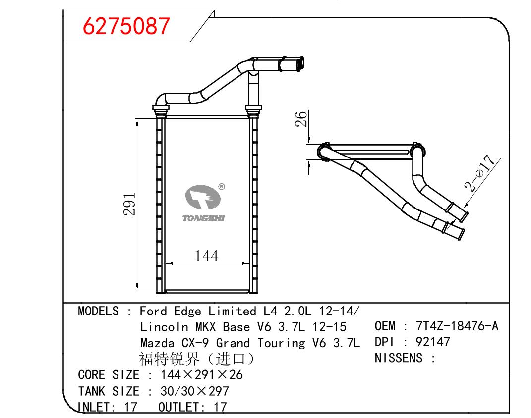 适用于福特锐界 Limited L4 2.0L 12-14/林肯 MKX Base V6 3.7L 12-15 Mazda CX-9 Grand Touring V6 3.7L暖风