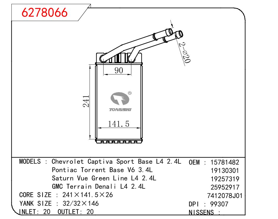 适用于GM DODGE Chevrolet Captiva Sport Base L4 2.4L/Pontiac Torrent Base V6 3.4L/Saturn Vue Green Line L4 2.4L/GMC Terrain Denali L4 2.4L OEM:15781482/19130301/19257319 /25952917/7412078J01