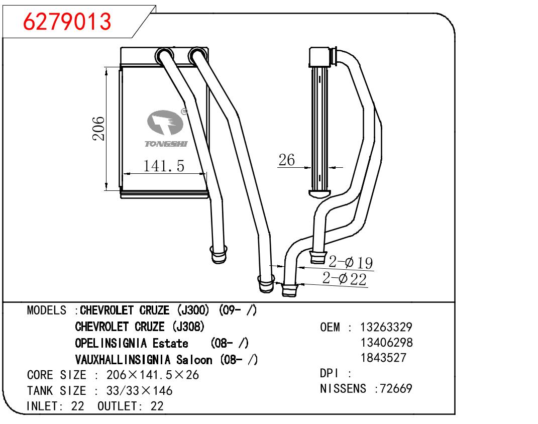 适用于雪佛兰CRUZE(J300)09-/雪佛兰CRUZE(J308)/欧宝英速亚ESTATE 08-/沃克斯豪尔INSIGNIA SALOON 08-/
