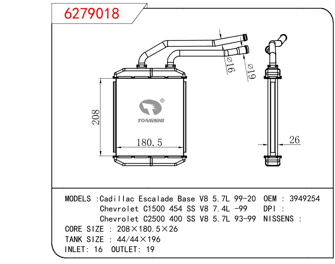 适用于凯迪拉克凯雷德Base V8 5.7L 99-20/雪佛兰C1500 454 SS V8 7.4L -99/雪佛兰C2500 400 SS V8 5.7L 93-99暖风