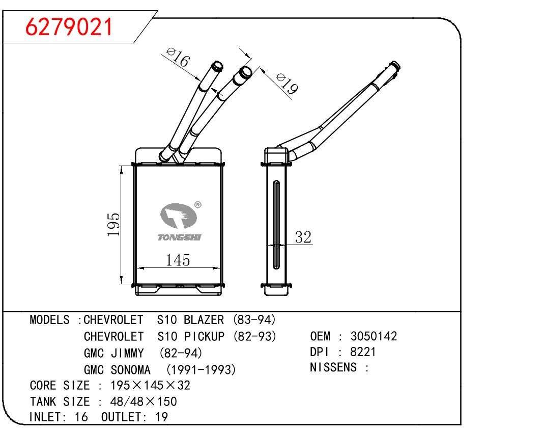 适用于GM DODGE CHEVROLET S10 BLAZER 83-94/CHEVROLET S10 PICKUP 82-93/GMC JIMMY 82-94/GMC SONOMA 91-93 OEM:3050142