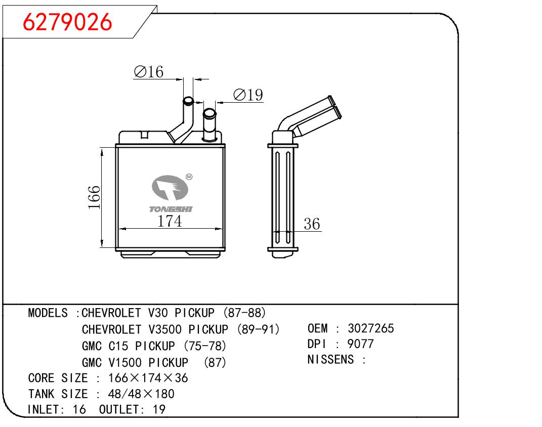 适用于GM DODGE CHEVROLET V30 PICKUP (87-88)/CHEVROLET V3500 PICKUP (89-91)/GMC C15 PICKUP (75-78)/GMC V1500 PICKUP (87) OEM:3027265