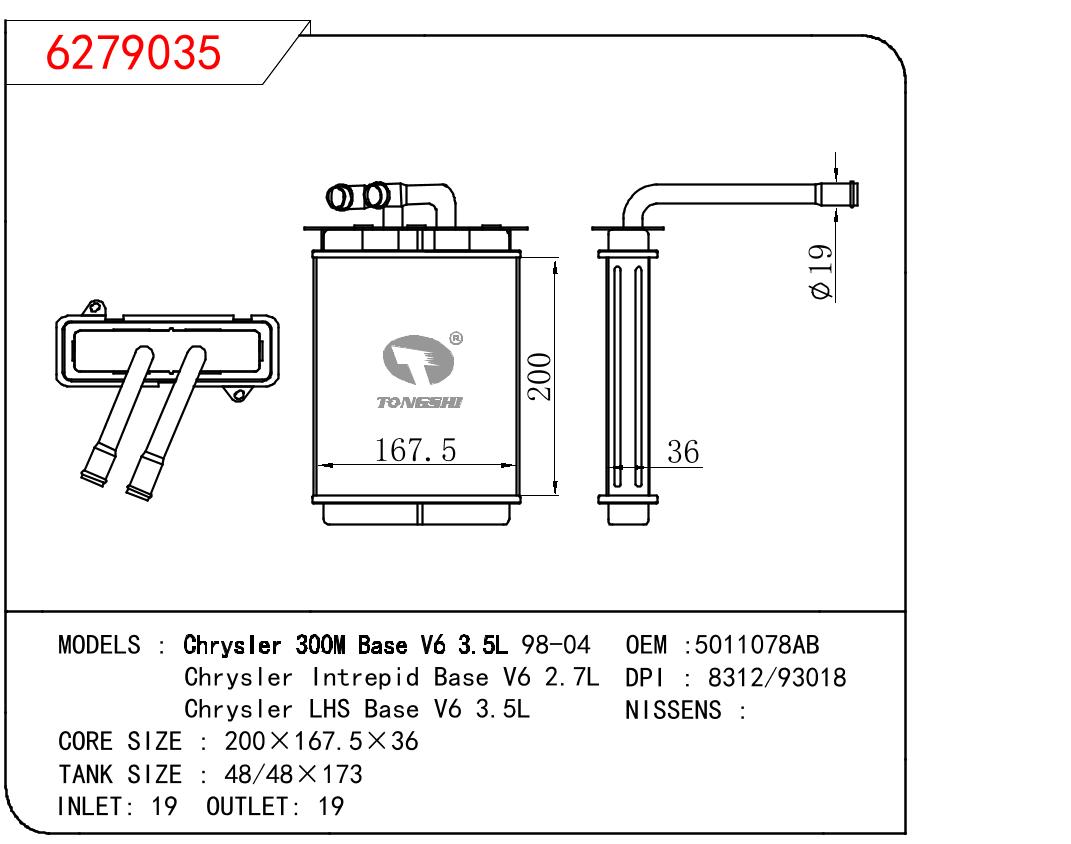• Chrysler 300M BASE V6 3.5L 98-04/ Chrysler Intrepid Base V6 2.7L /Chrysler LHS Base V6 3.5L