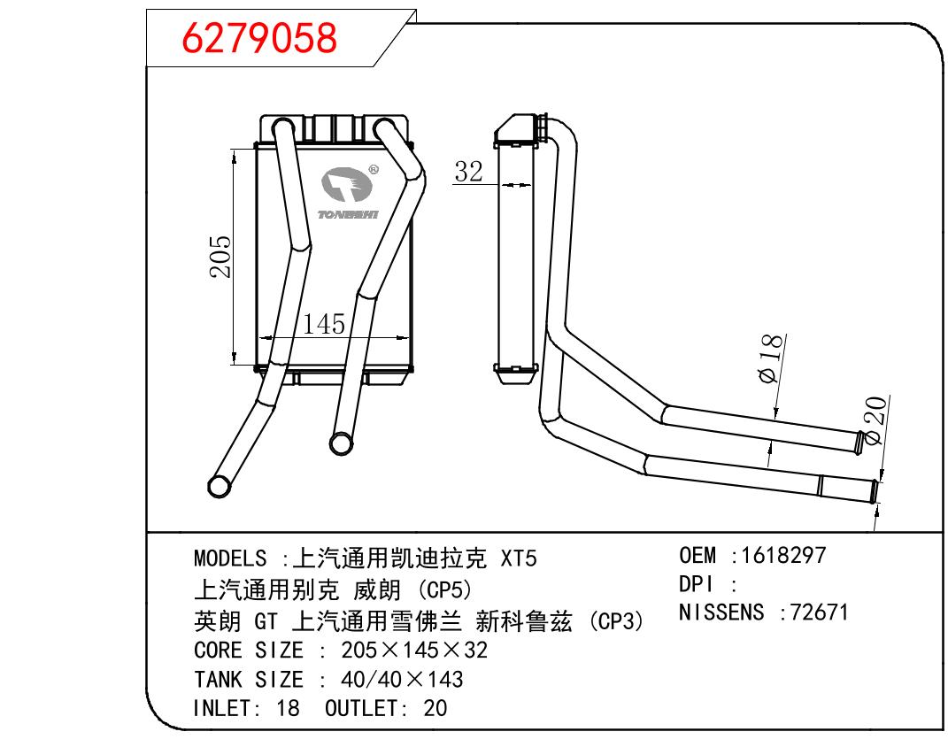 适用于GM DODGE 上海通用卡迪拉克 XT5/上海通用别克 威朗 CP5/英朗 GT 上海通用雪佛兰 新科鲁兹 CP3 OEM:1618297