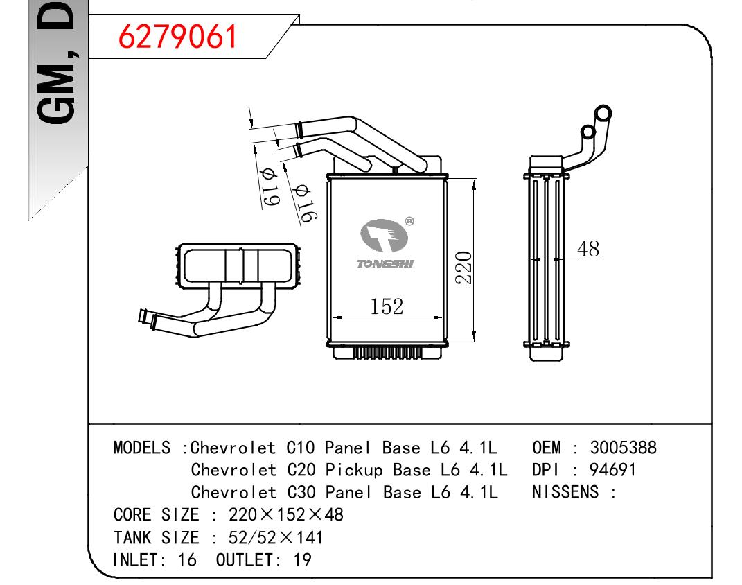 适用于GM DODGE Chevrolet C10 Panel Base L6 4.1L/Chevrolet C20 Pickup Base L6 4.1L/Chevrolet C30 Panel Base L6 4.1L OEM:3005388