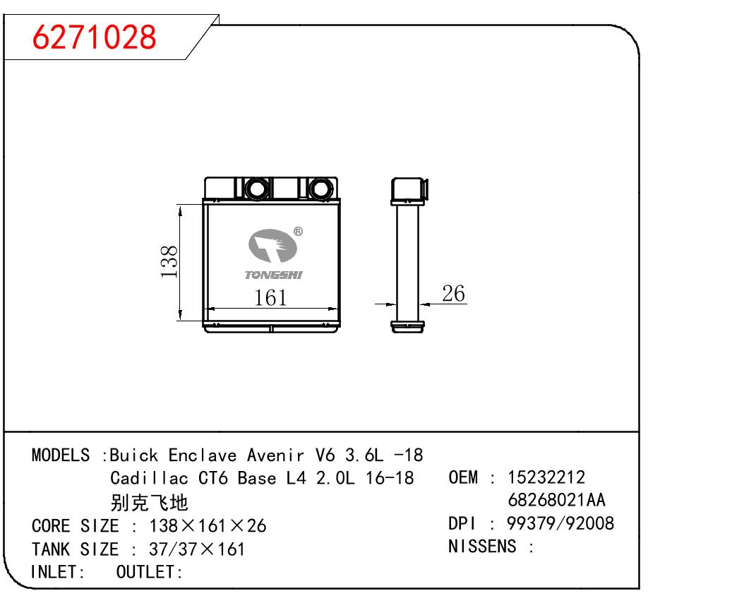 • 芯体尺寸:138*161*26