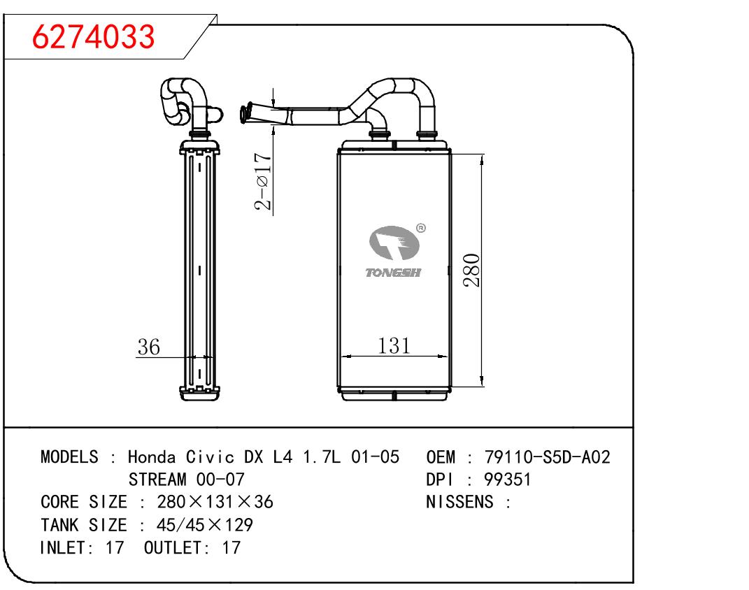 适用于沃尔沃V40 1.9TD D4192T 95- MT散热器