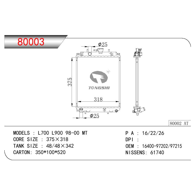适用于沃尔沃V40 1.9TD D4192T 95- MT散热器