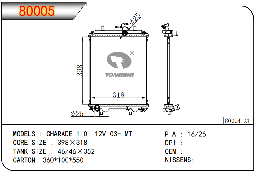 适用于沃尔沃V40 1.9TD D4192T 95- MT散热器