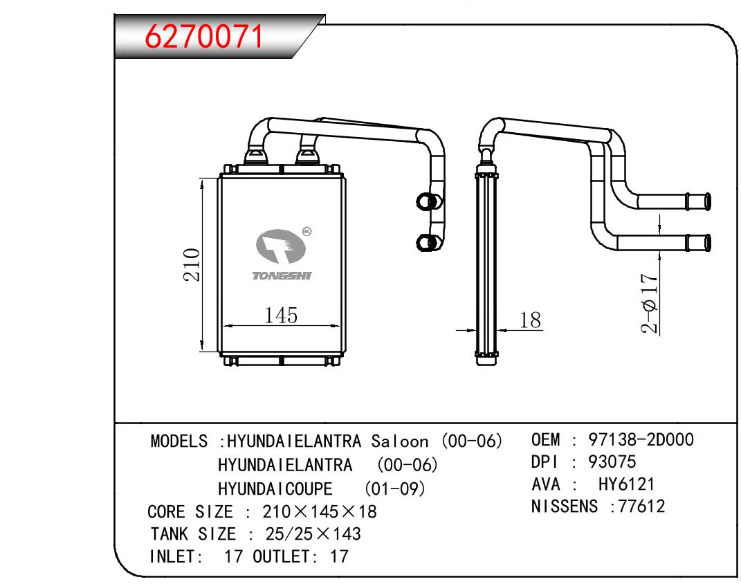 适用于HYUNDAI HYUNDAIELANTRA SALOON 00-06/HYUNDAIELANTRA 00-06/HYUNDAICOUPE 01-09 OEM:97138-2D000/971382D000