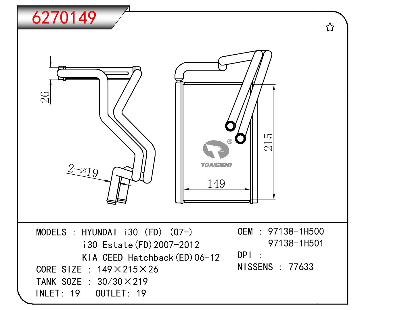 适用于HYUNDAI HYUNDAI i30 (FD) (07-)/i30 Estate(FD)2007-2012/KIA CEED Hatchback(ED)06-12 OEM:97138-1H500/97138-1H501