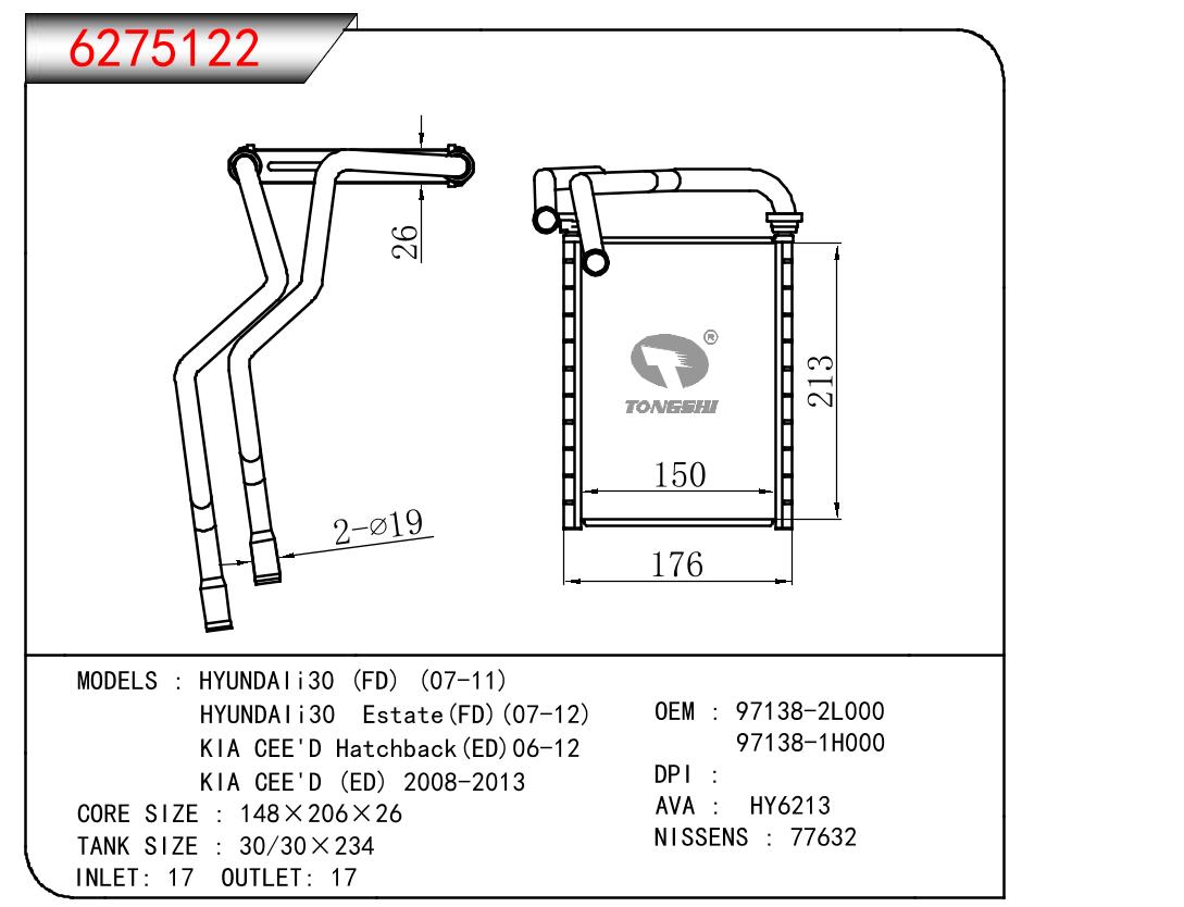 • HYUNDAIi30 (FD) (07-11)/HYUNDAIi30 Estate(FD)(07-12)/KIA CEE'D Hatchback(ED)06-12/KIA CEE'D (ED) 2008-2013