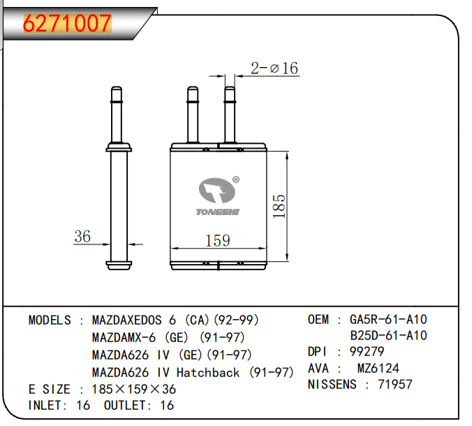 适用于马自达XEDOS 6 (CA)(92-99)/MX-6 (GE) (91-97)/626 IV (GE)(91-97)/626 IV Hatchback (91-97)暖风