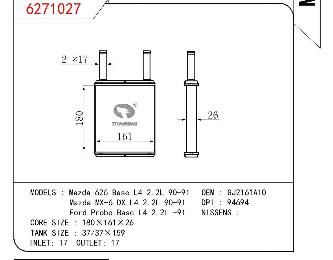 • 芯体尺寸:180*161*26