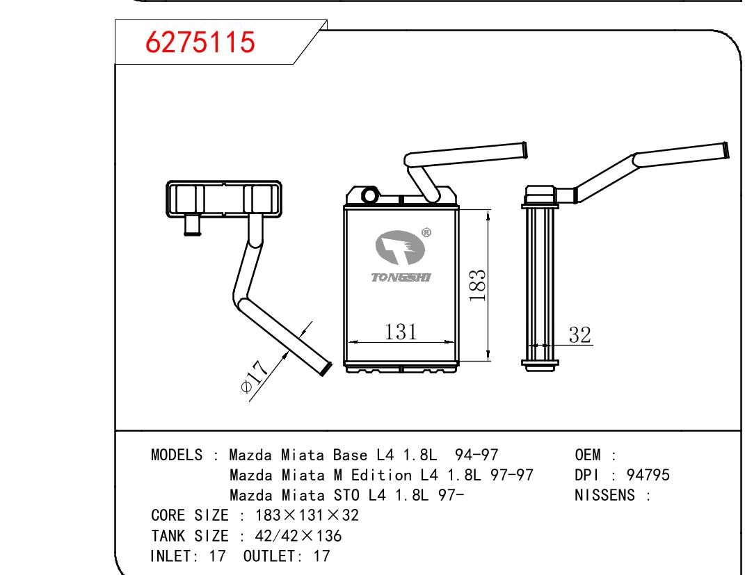 适用于MAZDA Mazda Miata Base L4 1.8L 94-97/Mazda Miata M Edition L4 1.8L 97-97/Mazda Miata STO L4 1.8L 97-