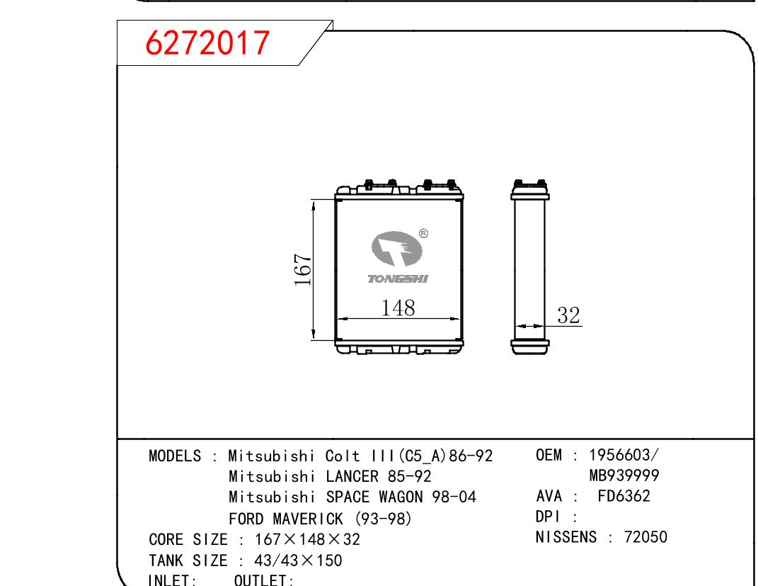 适用于三菱暖风Colt III(C5_A)86-92/蓝瑟85-92/太空车 98-04/福特翼虎93-98 OEM : 1956603/MB939999