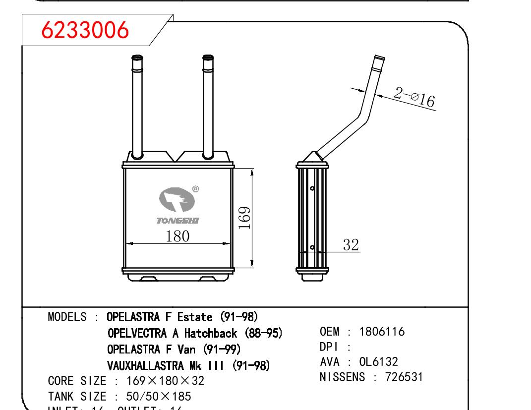 • 芯体尺寸:169*180*32