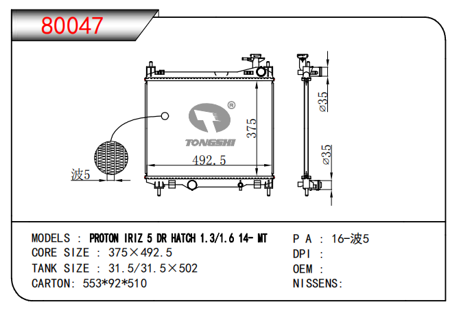 适用于沃尔沃V40 1.9TD D4192T 95- MT散热器