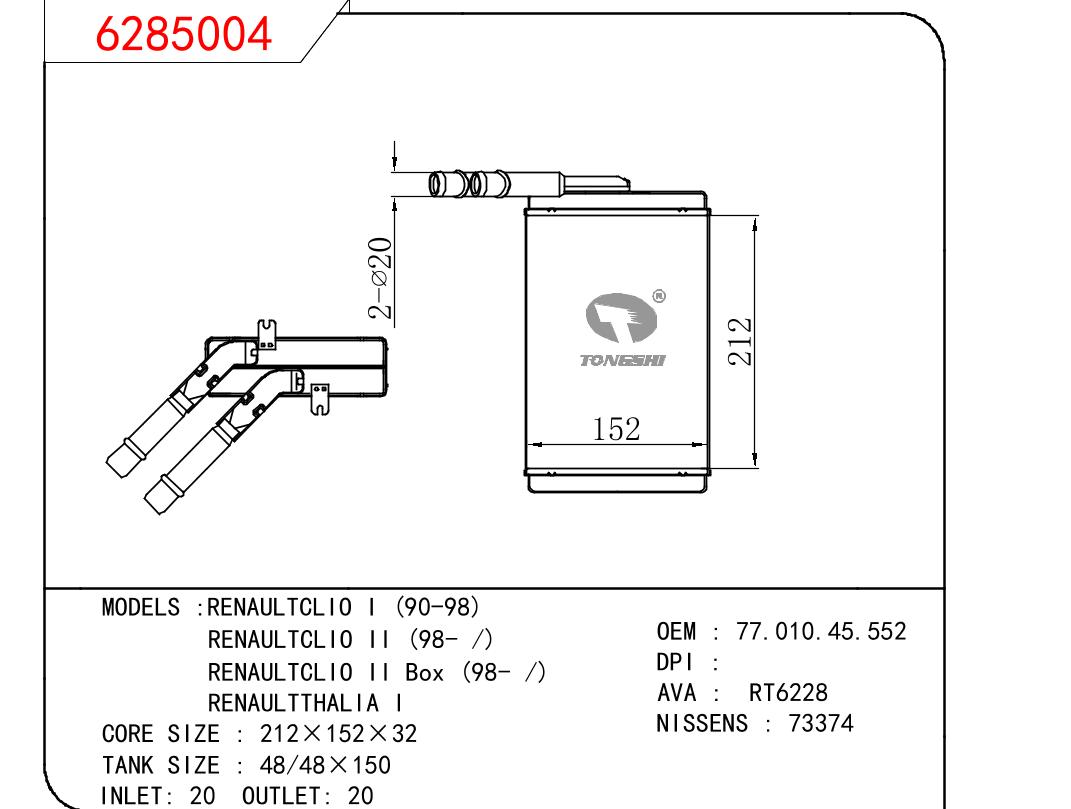 适用于RENAULT RENAULTCLIO I 90-98/RENAULTCLIO II 98-/RENAULTCLIO II BOX 98-/RENAULTTHALIA I OEM:7701045552