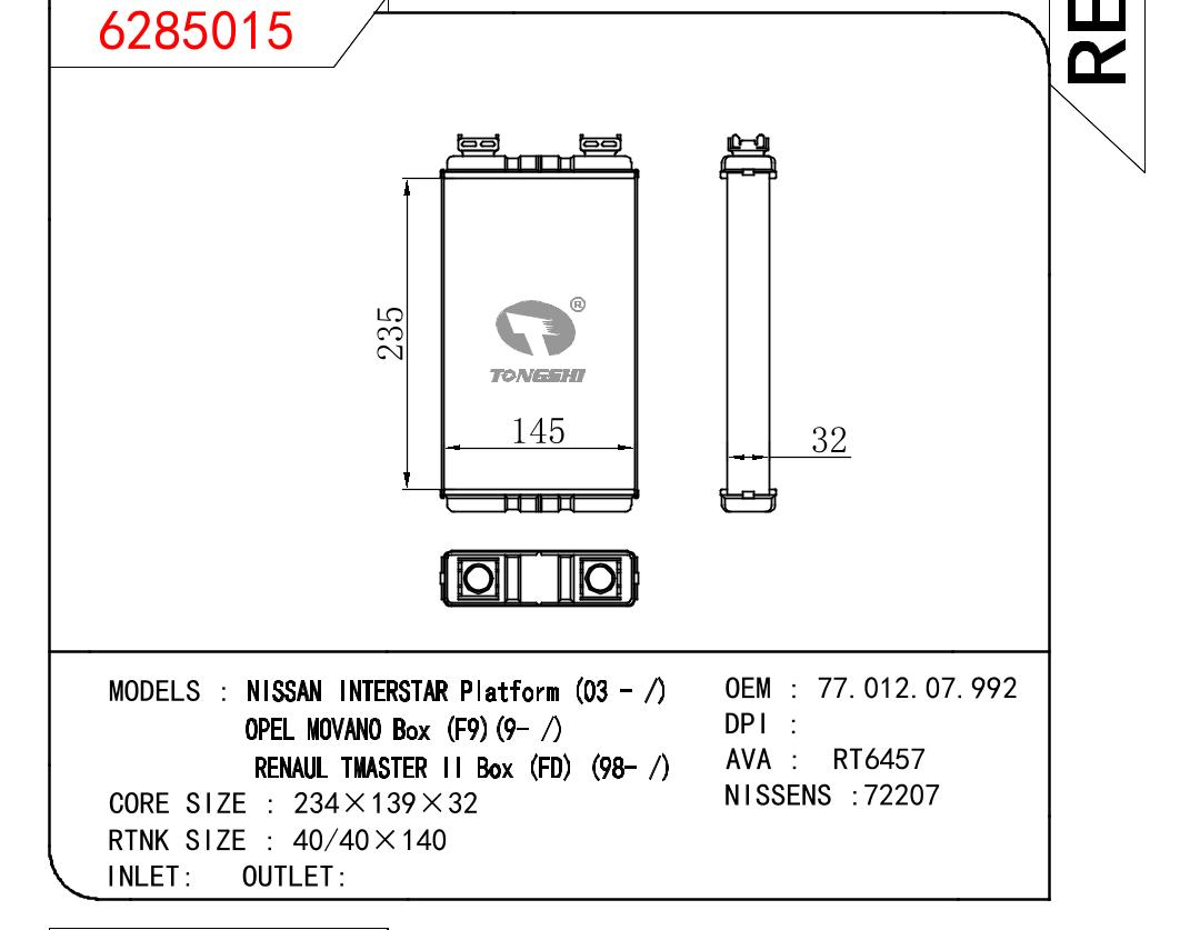 • 芯体尺寸:235*145*32
